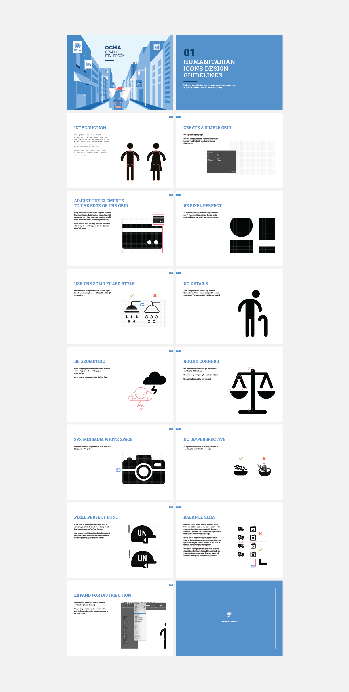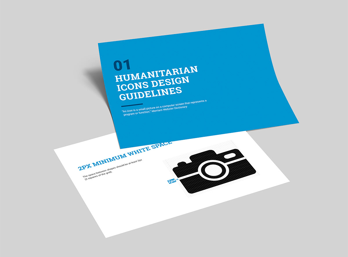 In 2012, the United Nations Office for the Coordination of Humanitarian Affairs ( OCHA) released to the public domain a set of 250 icons depicting themes of interest to the humanitarian community such as disaster types, categories of affected people, and relief items. Six years on from the release date, and becoming by far the organization’s most popular product, the team decided to update the icon set. The collection had grown organically to meet internal communication needs but had not followed any standardized design rules.