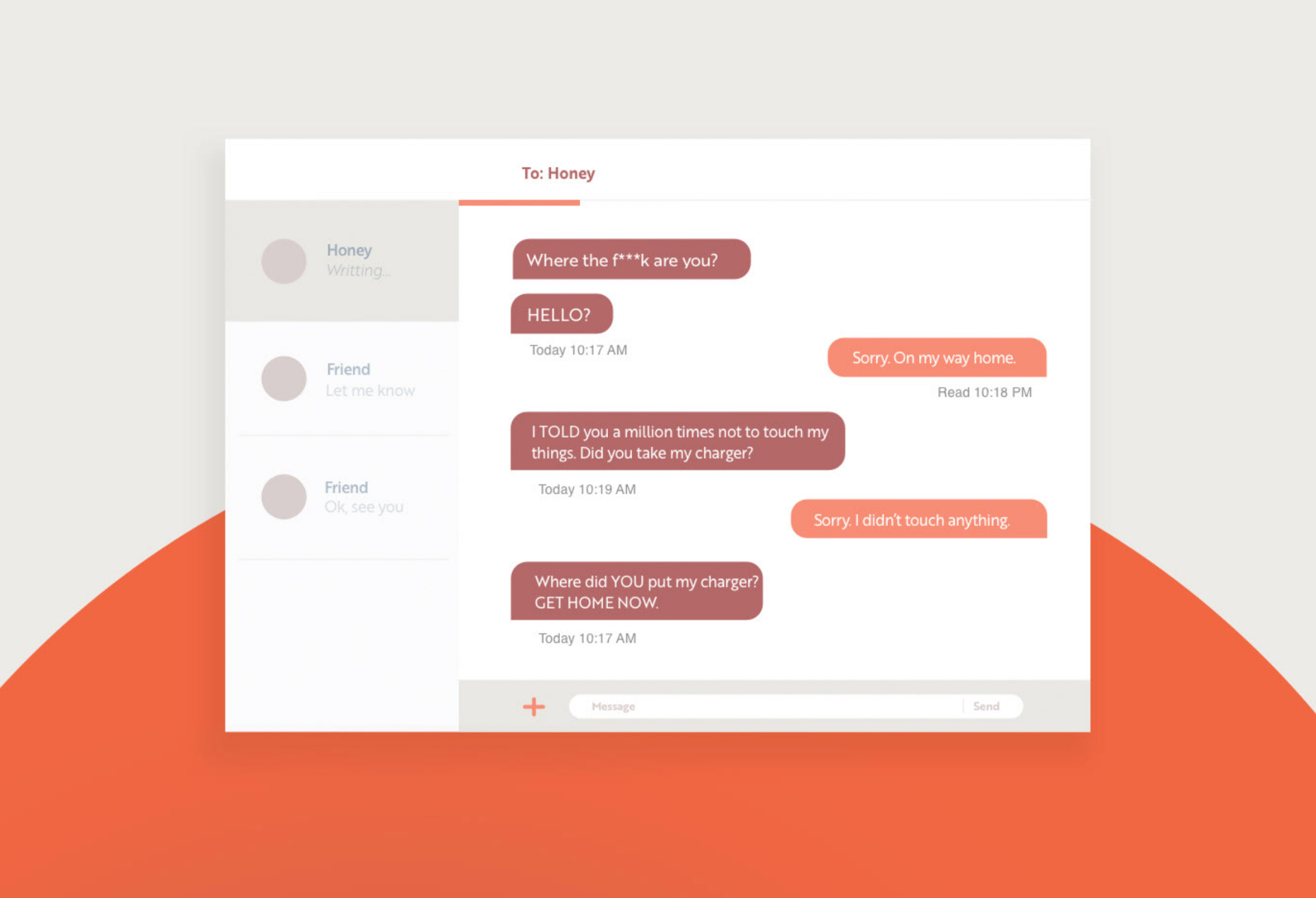 The team saw an opportunity to raise awareness of a type of domestic violence that is new to many people. To do so, we decided to create a storytelling piece, and generate a scenario where harassment takes place in an SMS environment. This allowed us to create a connection to people who are victims, people who are witnessing abuse and people who are perpetrators, and offer them the tools and resources to fight it.