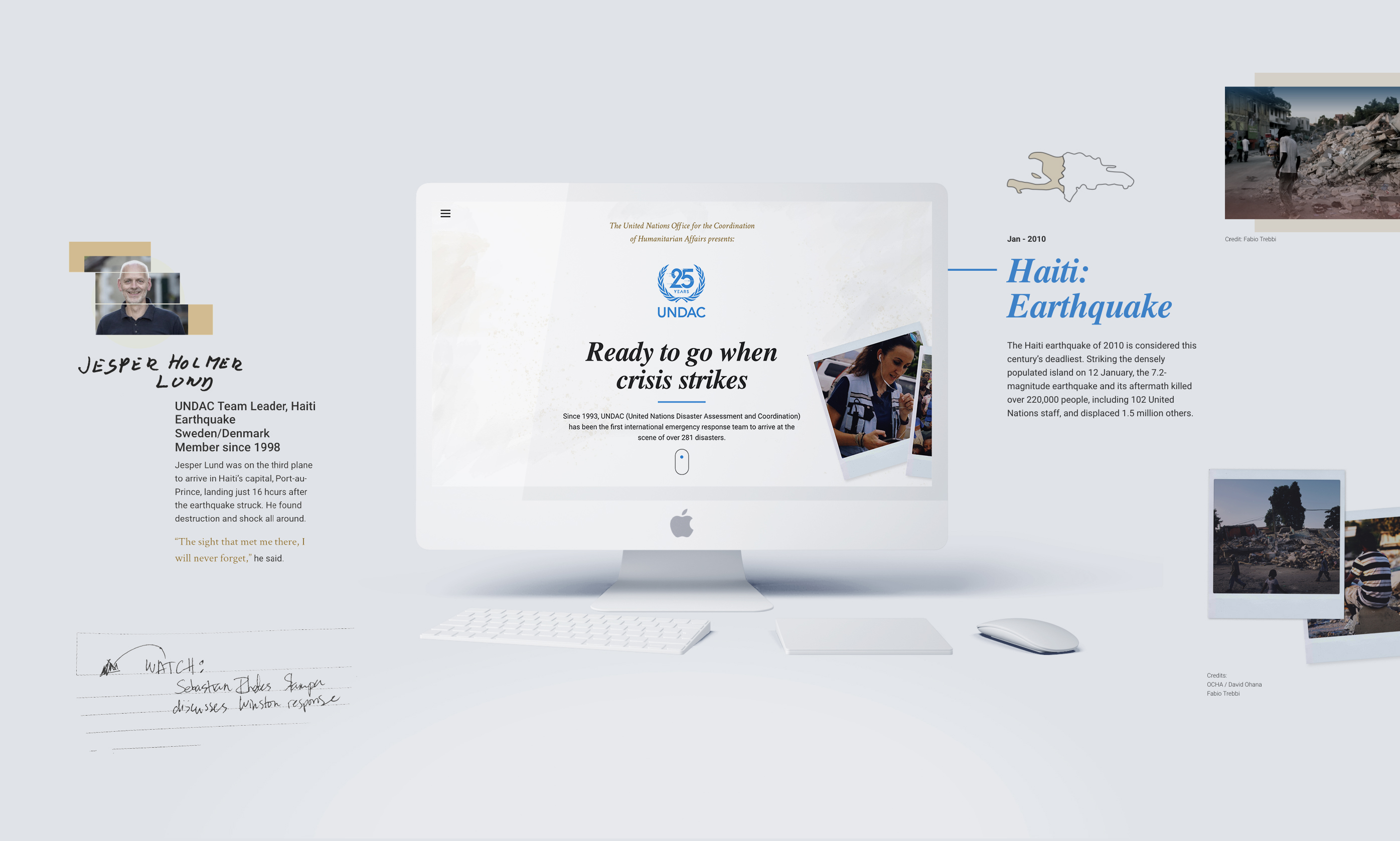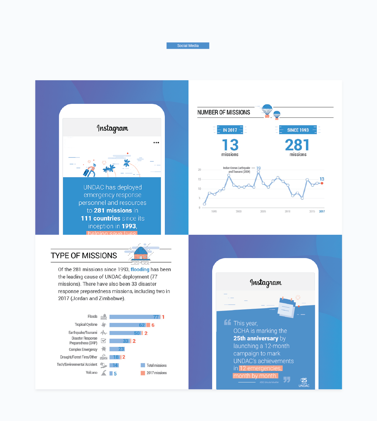 To celebrate its 25th anniversary the United Nations Office for the Coordination of Humanitarian Affairs (UNOCHA) Visual Information Unit (VIU), was commissioned to promote UNDAC's work with an anniversary logo, branding products, social media promotion and a website.